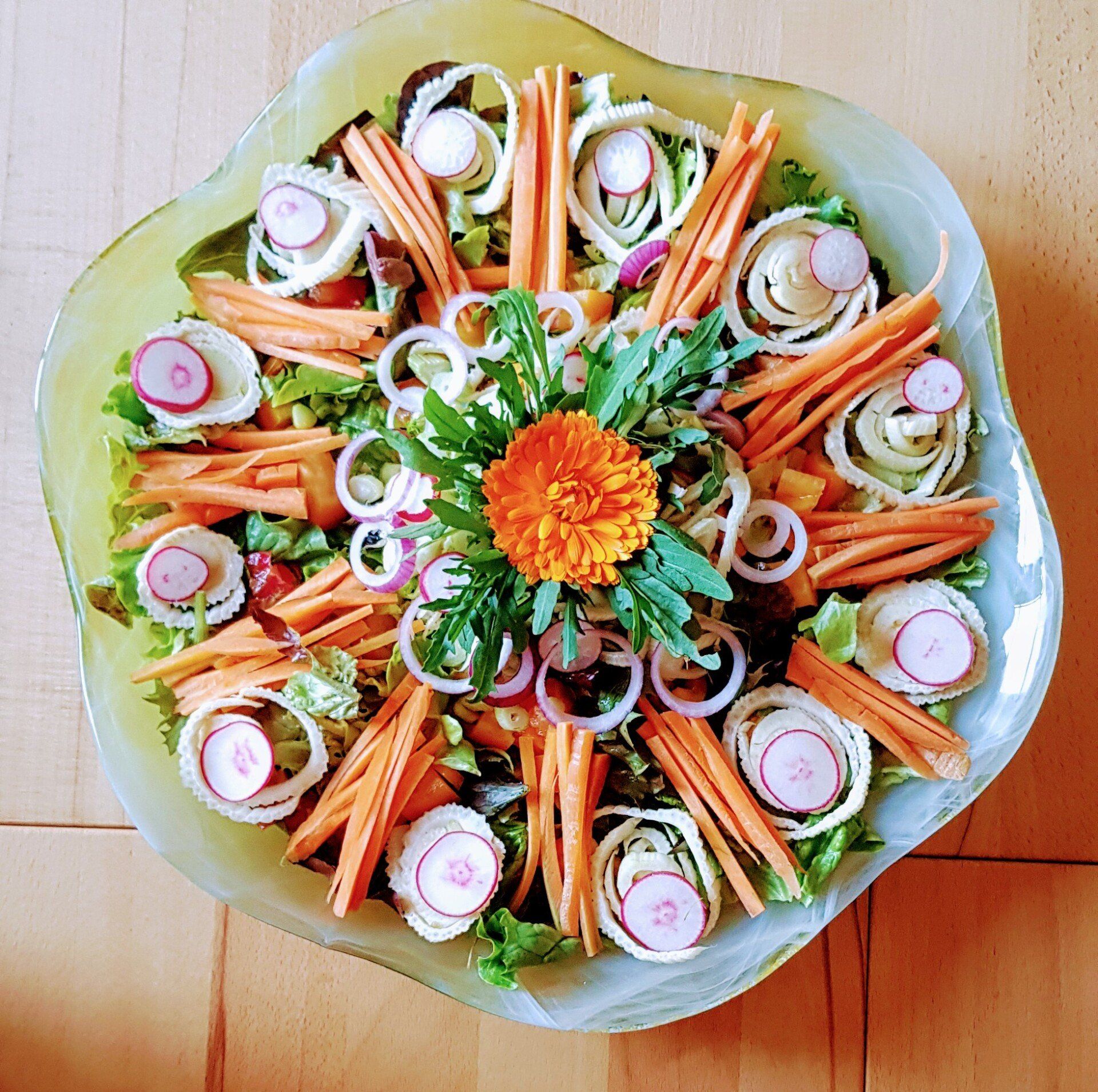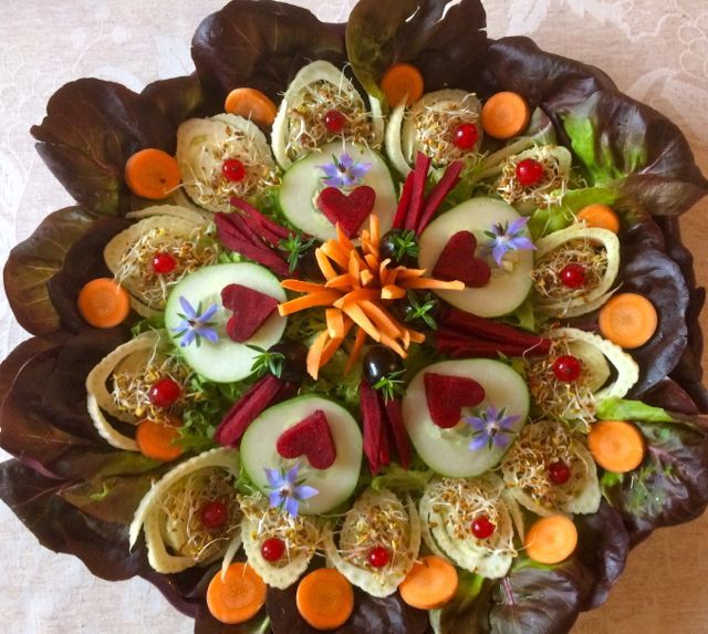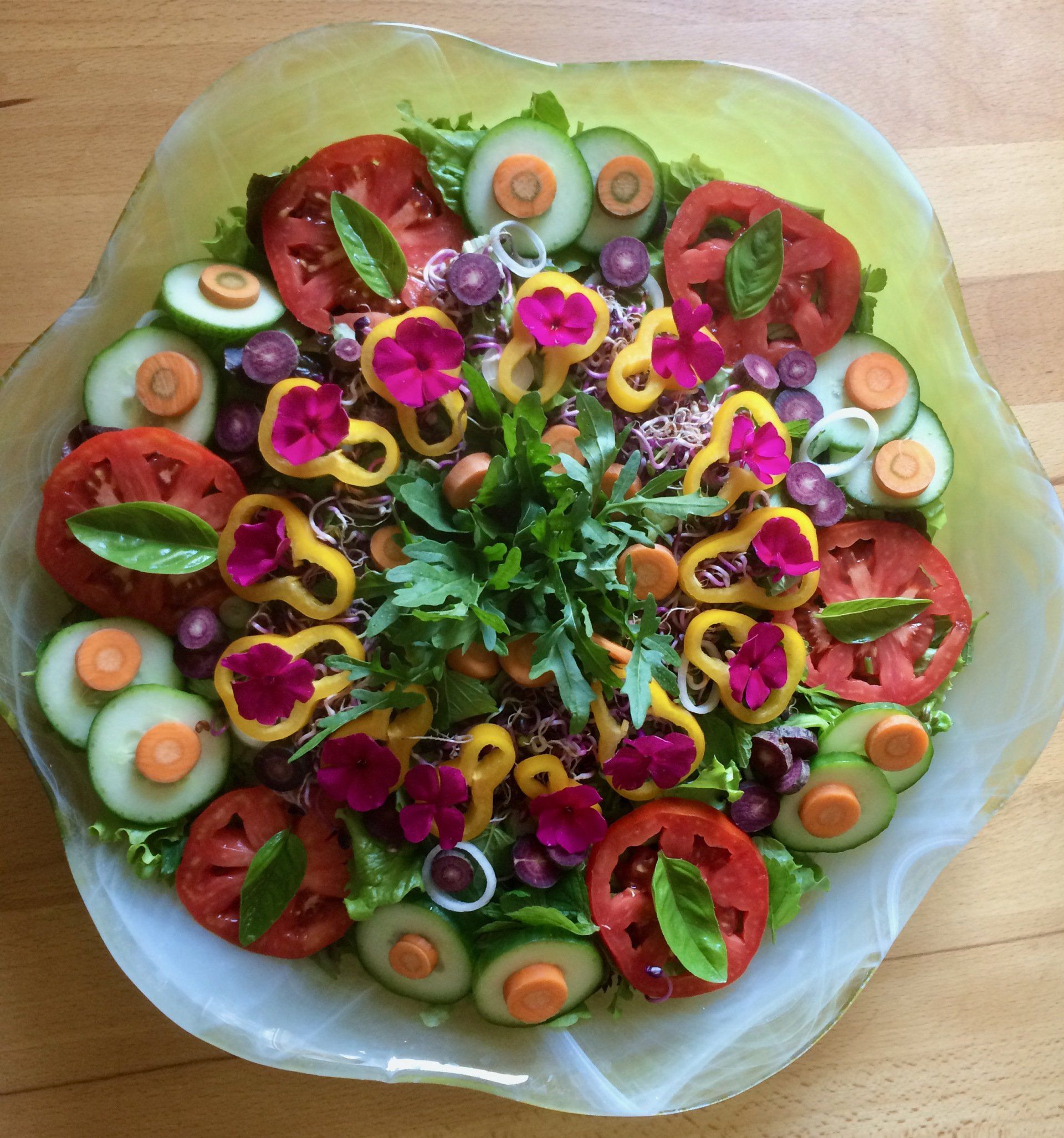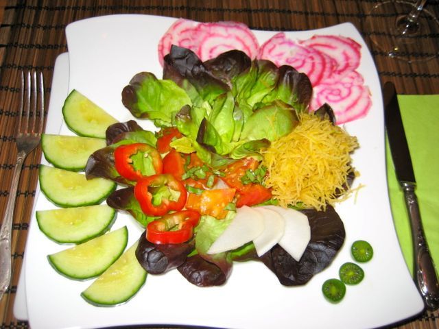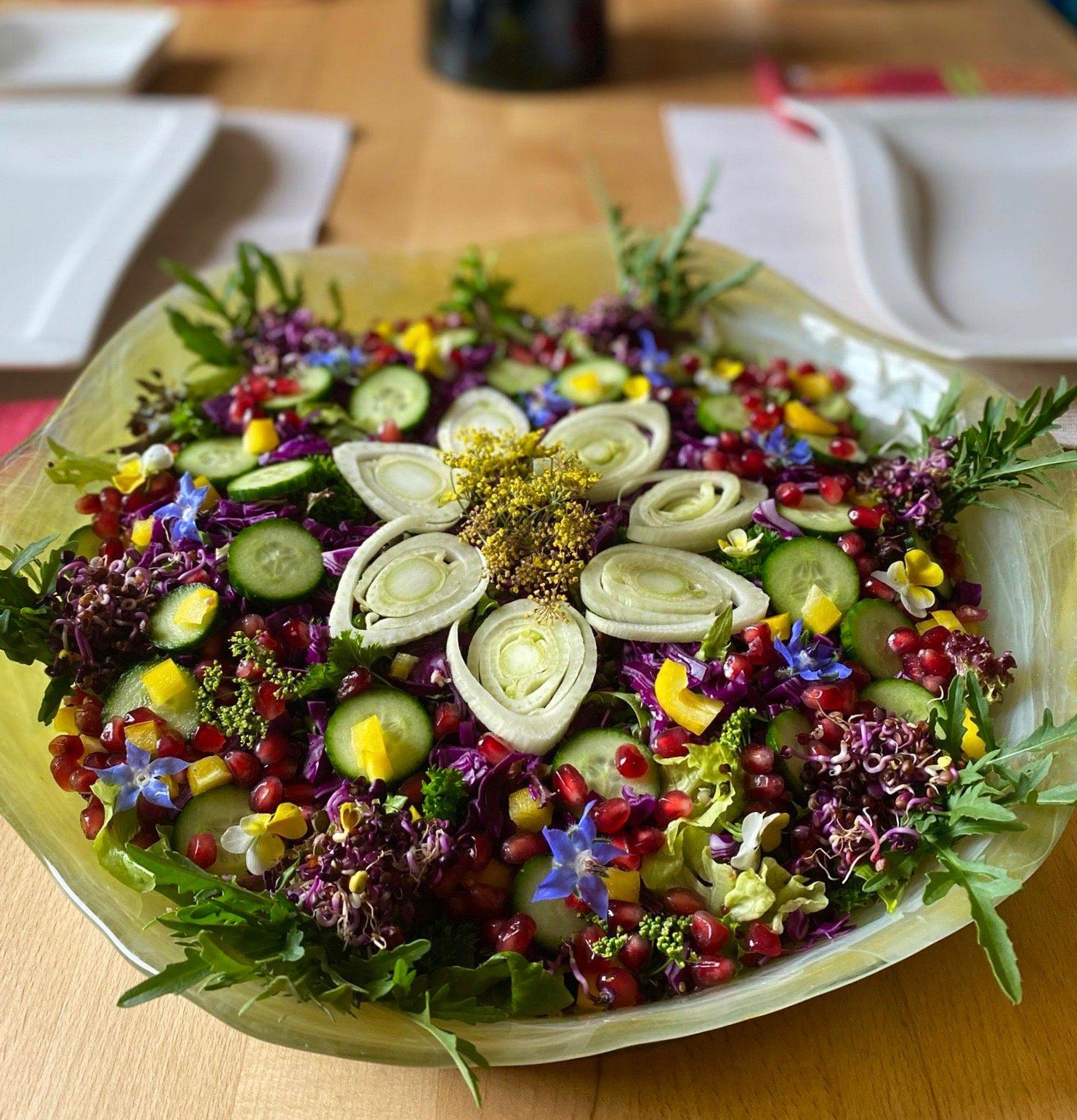 Die kreativen Gerichte entstehen aus frischem schmackhaftem saisonalem Gemüse und Salaten aus dem Garten und dem Bio-Hofladen in der Nähe.