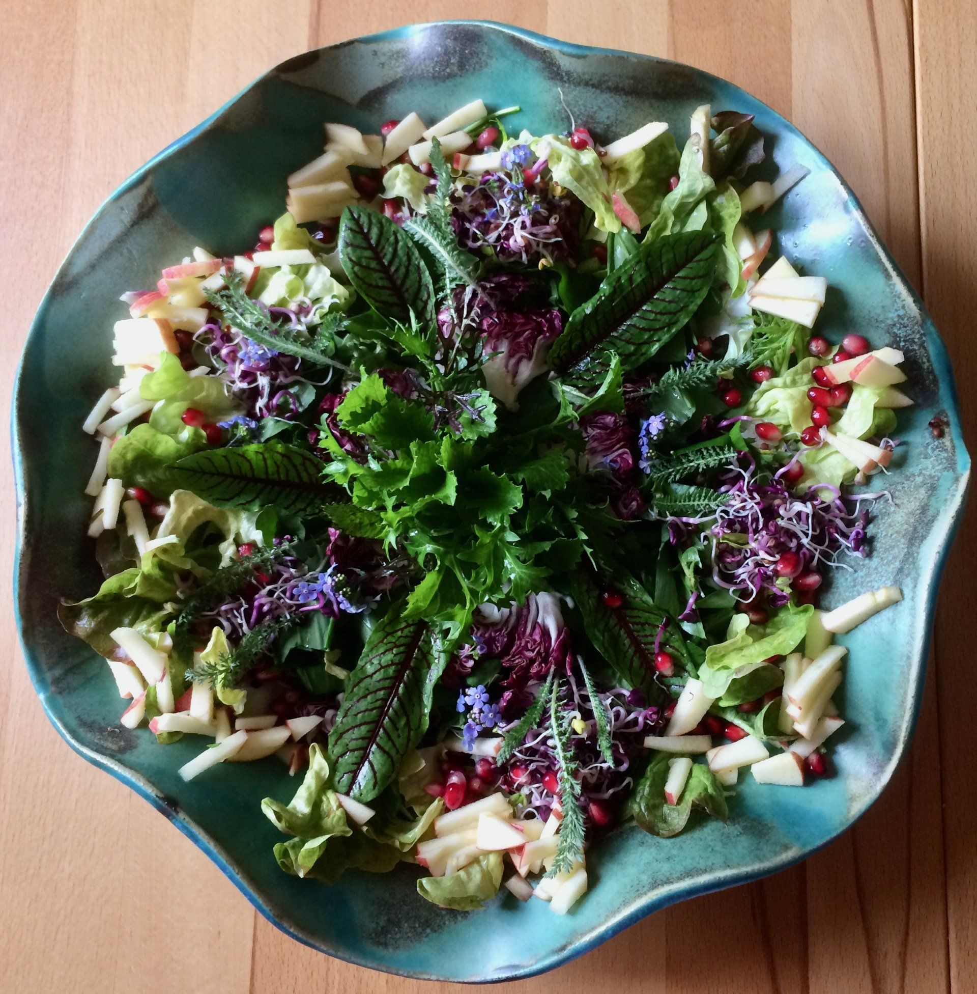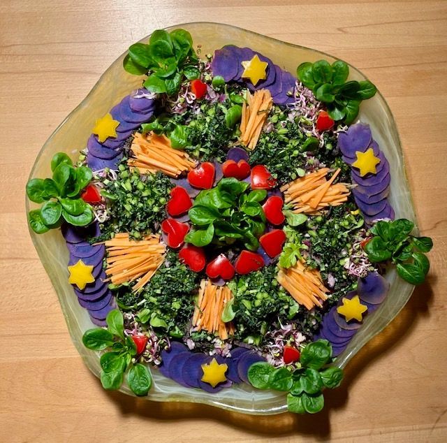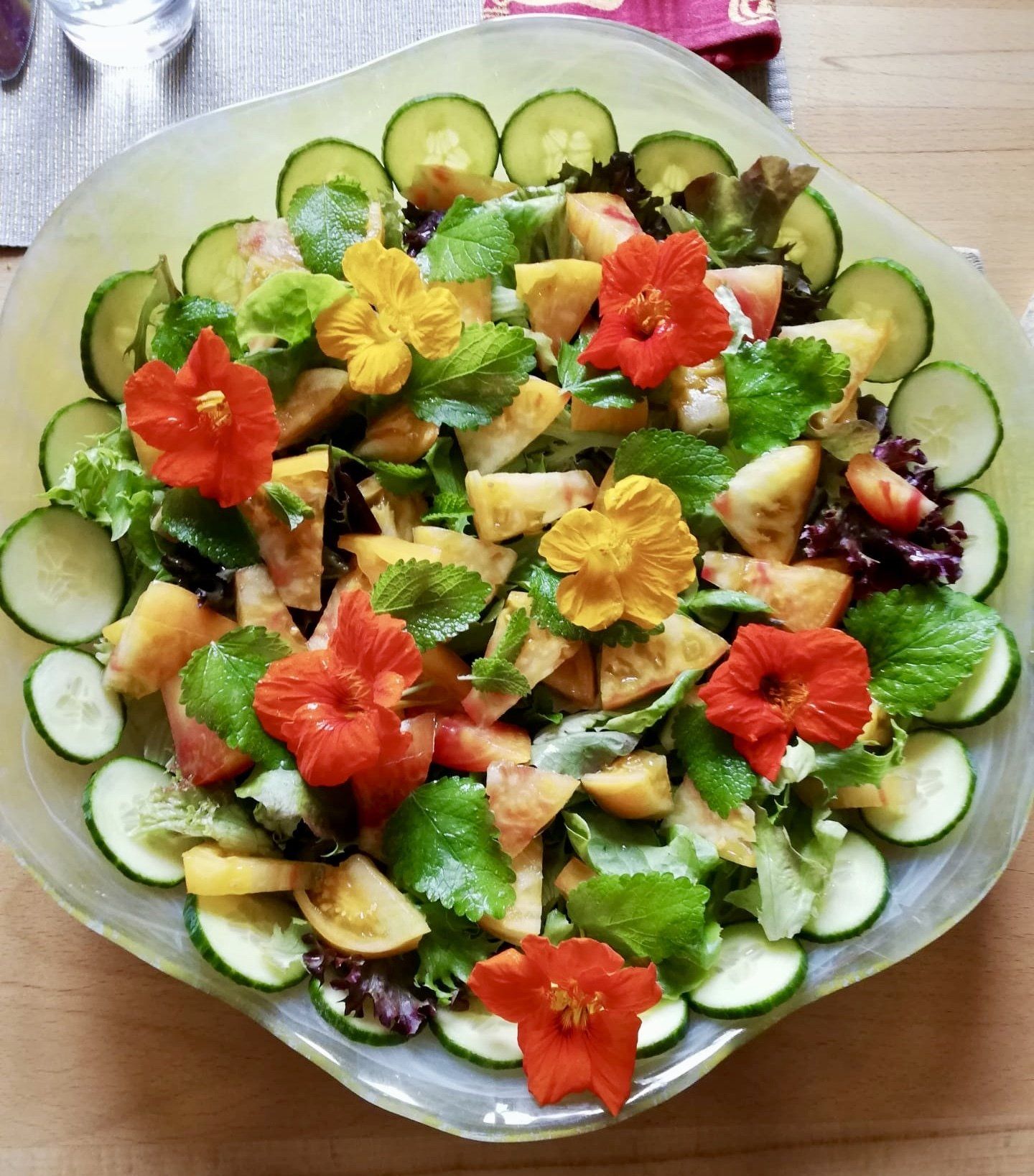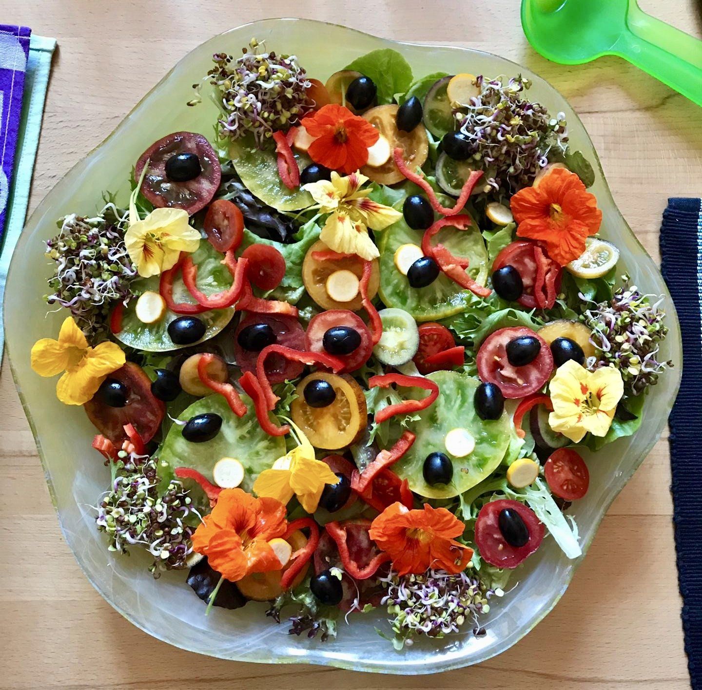 Die kreativen Gerichte entstehen aus frischem schmackhaftem saisonalem Gemüse und Salaten aus dem Garten und dem Bio-Hofladen in der Nähe.