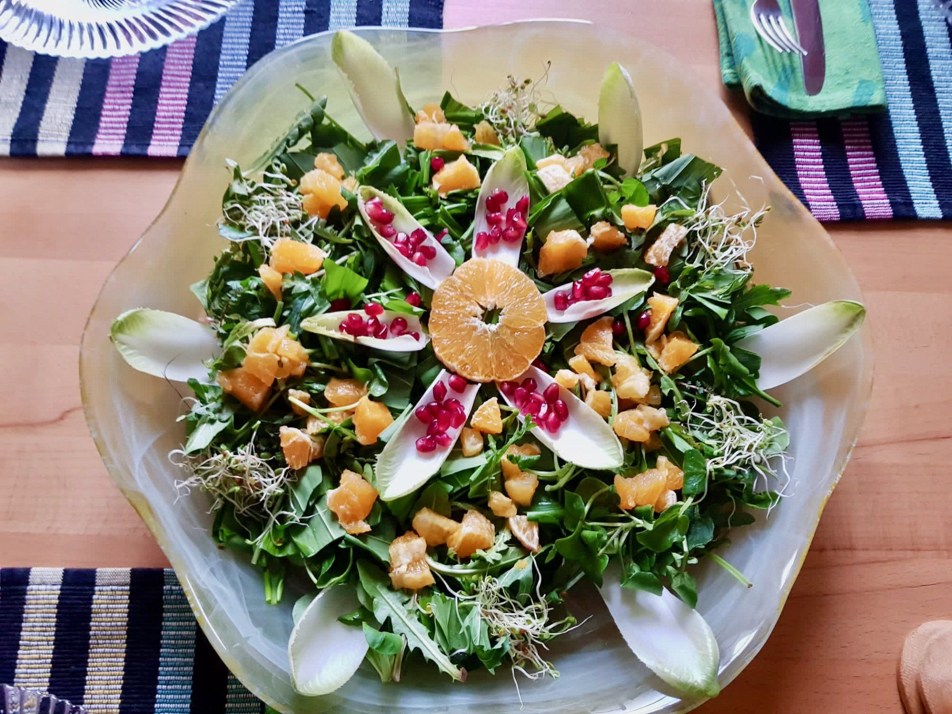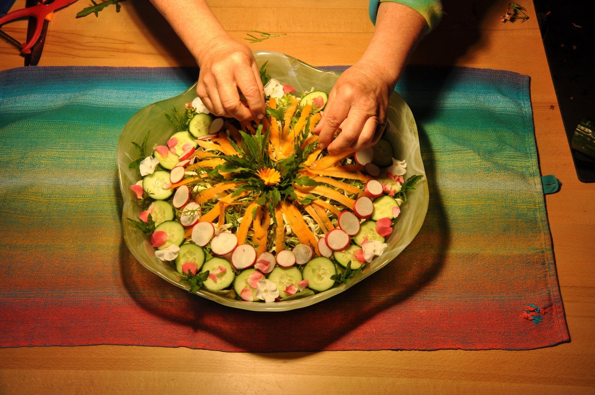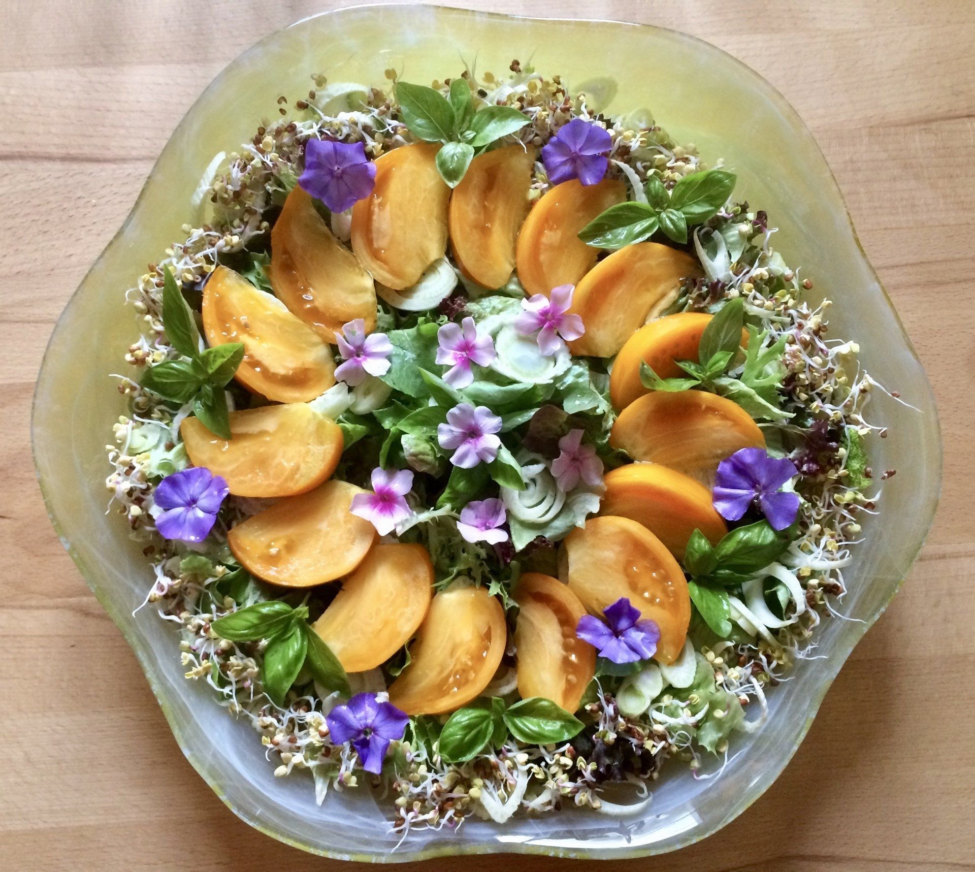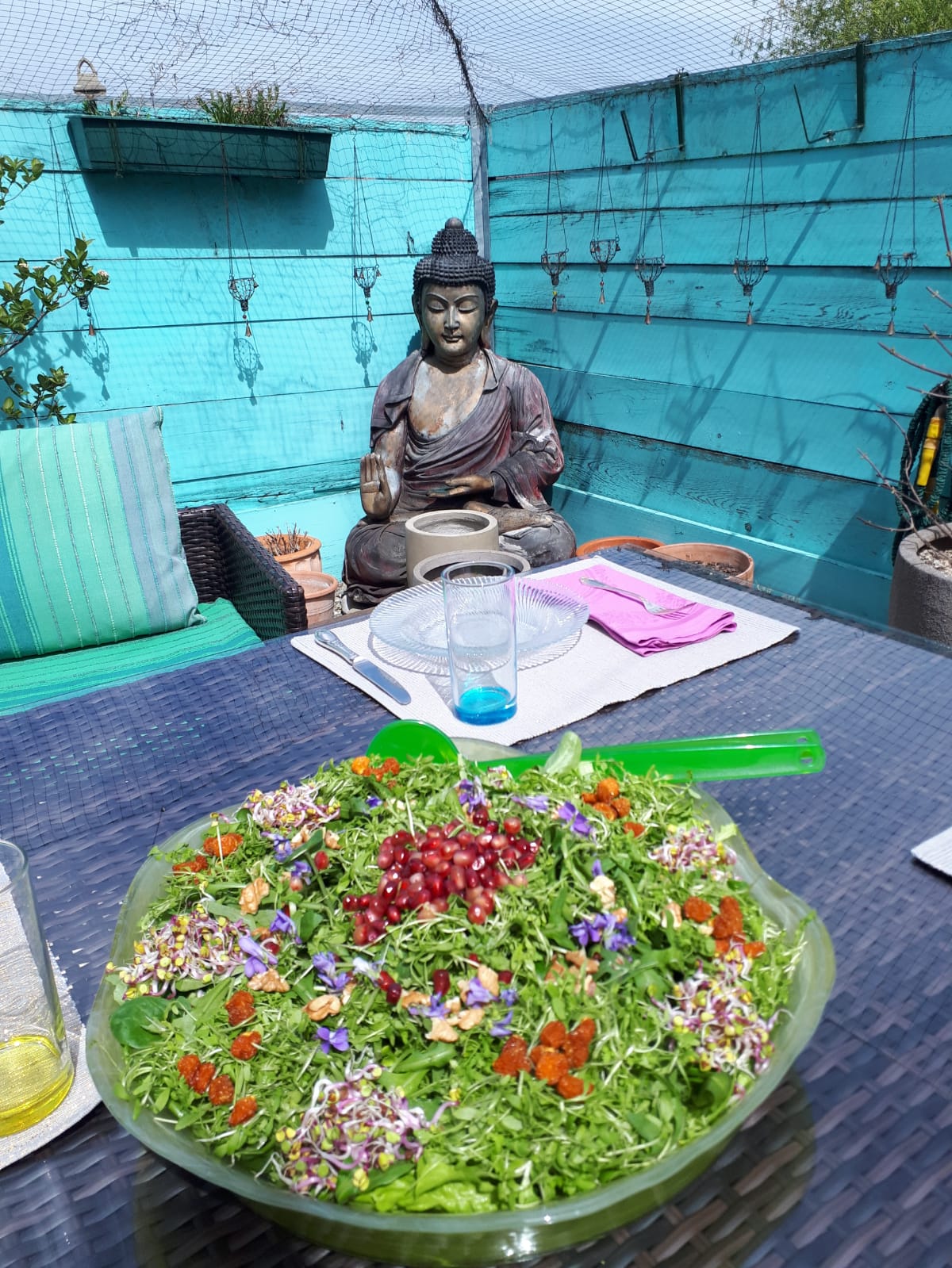 Die kreativen Gerichte entstehen aus frischem schmackhaftem saisonalem Gemüse und Salaten aus dem Garten und dem Bio-Hofladen in der Nähe.